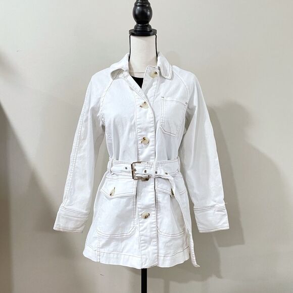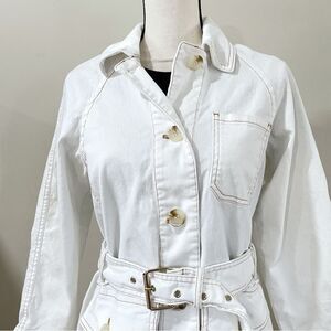 Bagatelle Collection Off-white Utility Jacket Button Belted Cotton, Women Small