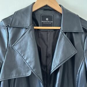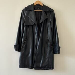 Bagatelle Collection Open Front Faux Leather Trench Coat Jacket Black Size Small