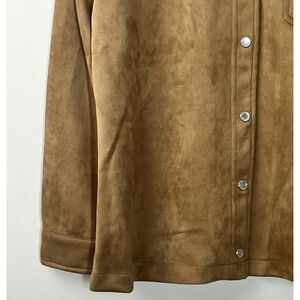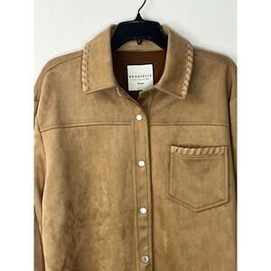 Bagatelle Collection Pearl Snap Western Shirt Womens Large Beige Faux Suede