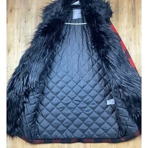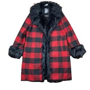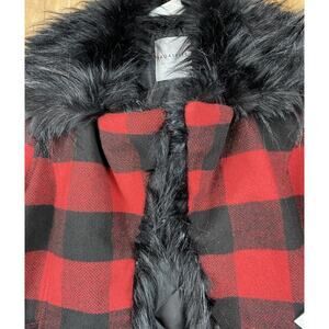 Bagatelle Collection Red Black Buffalo Plaid Faux Fur Trim Coat Jacket Small