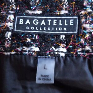 Bagatelle Collection Tweed A-Line Mini Skirt-Large-Metallic Tinsel-Rainbow-Lined