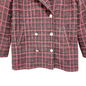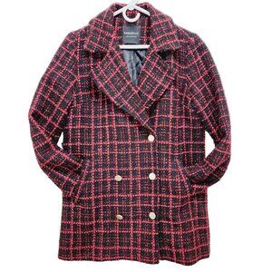 Bagatelle Collection Tweed Jacket Pea Coat Size S Women's Red Black Plaid