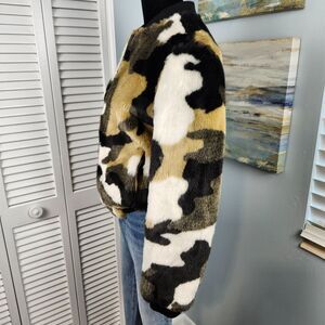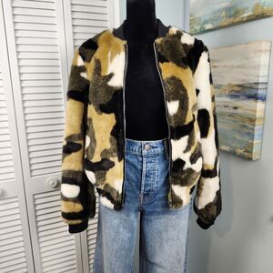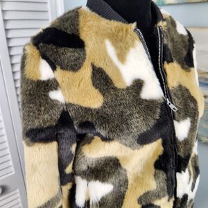 Bagatelle Faux Fur Bomber – XS Multi Camo ***Flawed Lining*** Cozy Streetwear