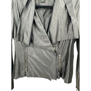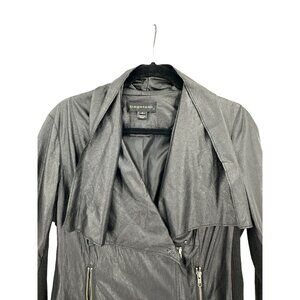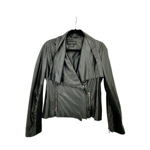 Bagatelle Faux Leather Jacket Women Medium Black Drape Fly Away Mixed Media Moto