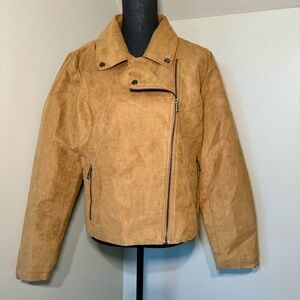 Bagatelle Faux Suede Moto Jacket Women's Size Large Tan Asymmetrical Zip Front