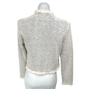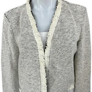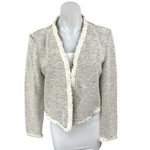 Bagatelle Gray Metallic Tweed Long Sleeve Open Front Fringe Blazer Coat Jacket S