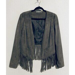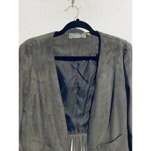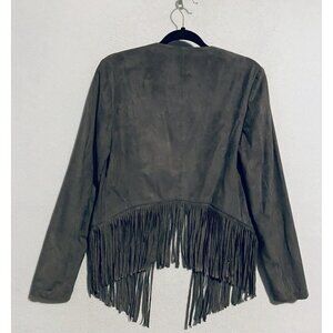 Bagatelle Jacket Womens Medium Gray Faux Suede Fringe Open Front Western Boho