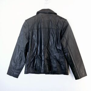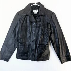 Bagatelle Leather Jacket Mens Small Black Button Front Kined Blazer Gothic Goth, collared, lined, pockets, breathable, resilient.