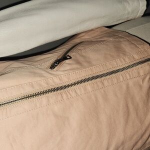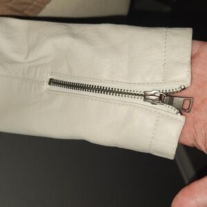 Bagatelle Leather "type" look Retro Zip up Jacket Size Small lined Pink & Cream