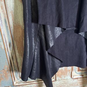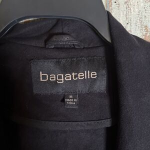 Really cool Bagatelle faux leather women's M vest. I love the asymmetrical hemline. This is a great accessory to have in your closet. Its a little biker, a little goth, a little funky and a lot sophisticated. The approximate (because it is an open front item ) Pit to pit measurement is about 18 inches, and the length (from the collar to center of back hemline ) is about 25 inches. Please check photos.