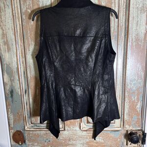 Bagatelle Medium Black Vest Tie Front Faux Leather Look Open Front Asymmetrical