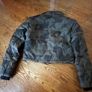 Camo print bomber jacket with zip up and velcro closure. Smoke free home and excellent condition