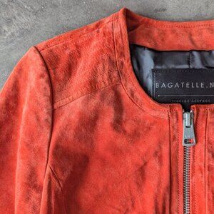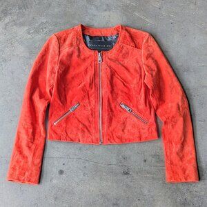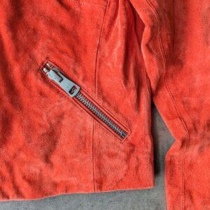 Bagatelle NYC Orange Suede Leather Cropped Moto Jacket small