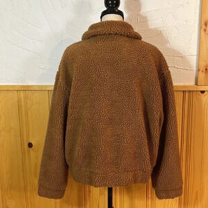 Cute faux fur zip-up jacket with large side front pockets and wide collar. In excellent worn condition. No holes or stains. Approximate measurements laying flat: bust 25” across from armpit to armpit, sleeve length 23” and length 24”.