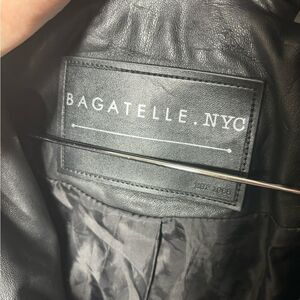 Bagatelle NYC small black oversized faux leather bomber puffer button jacket
