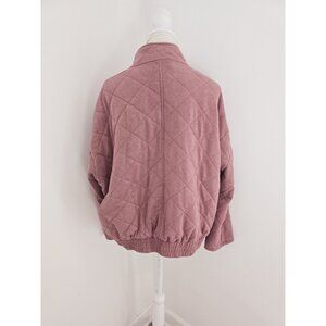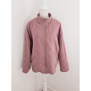 Bagatelle Quilted Cotton French Terry Zip Up Pink Stand Collar Womens Jacket XL