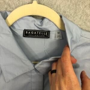 Bagatelle Collection Shirt Womens Medium Blue Button Up Down Front Corp Career Work Capsule Stretch Cotton Oversized