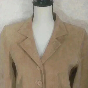 Bagatelle Tan Light Brown Khaki Suede Leather Coat Jacket Blazer Women Size 10 Casual Business Casual Fall Office Officecore