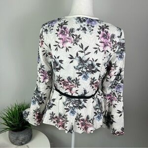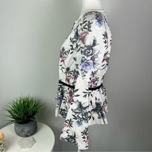 Bagatelle Womens Perforated Vegan Leather Peplum Jacket Floral Print Medium