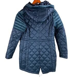 Bagatelle hooded long puffer coat teal with velvet accents size L