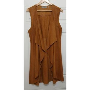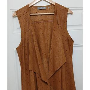 Bagatelle womens large long leather perforated tan western vest rodeo cowgirl