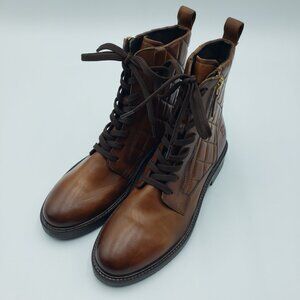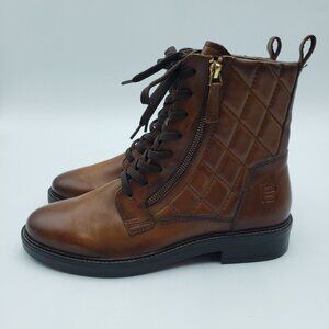 Bagatt Zina Lace Up Quilted Ankle Boots 9 Womens Zipper Leather Cognac Brown
