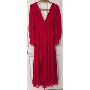 Bagdley Mischka Plisse pleated chiffon formal gown ($795) Pink long sleeve fuschia small size 2 ptp 18.5 total length 59 inches