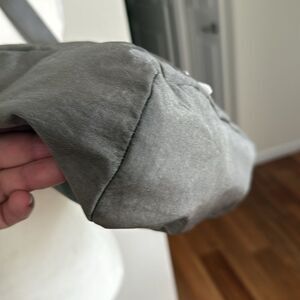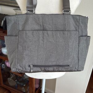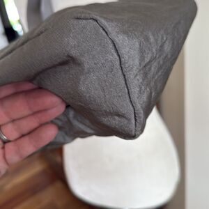 In good shape - just a spot on the inside lining. Lots of storage including a detachable wristlet. Measures 14” x 11” x 4.5”. Strap drop is 12”.