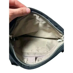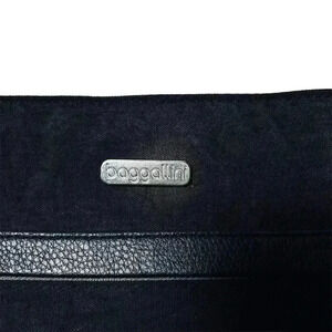 Crafted from durable nylon and leather, this Baggallini bag is the epitome of functional elegance. The sleek black exterior is complemented by a front zippered pocket and an adjustable strap, ensuring both style and comfort. Designed for unisex adults, its water-resistant material and lightweight design make it perfect for daily adventures. Inside, multiple compartments keep your essentials organized and secure with a reliable zipper closure. This pre-owned bag is in excellent condition and is ready to accompany you on your next journey.