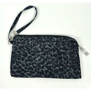 Baggallini Black Multi Leopard Print Nylon Card Wristlet RFID Unused New