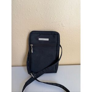This compact Baggallini black nylon crossbody bag is perfect for travel or everyday errands.