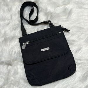 This purse is in excellent preowned condition. Only use for a very short time. It measures approximately 7 1/2 inches wide by 8 inches tall with adjustable shoulder strap. There is one snap pocket on the backside of the purse, one zipper pocket on the front of the purse, one snap pocket once the flap is open and the inside of the purse has one zipper pocket and four credit card slots
