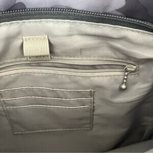 Baggallini Bucket Camo crossbody with adjustable straps and loads of storage. Top zipper closure, two front zipper pockets, Front cell phone pocket. Water resistant. Crossbody strap drop 15" - 27". Great condition, no stains, minor interior minor pen mark. Please review all photos, thank you!