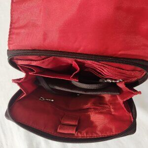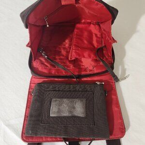 Baggallini Crossbody Bag Brown Small Nylon Square Faux Buckle Flap Fold Zip Close Phone Slip Pocket Pen Loop Detachable Wristlet ID Window Card Pockets Slip & Zip Pockets Key Holder Casual Travel Vacation Cruise Modern Contemporary Gently Pre-Owned Excellent Condition Reasonable Offers Welcome