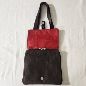 Baggallini Crossbody Bag Brown Small Nylon Square Faux Buckle Flap Fold Zip Clos