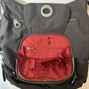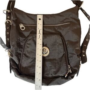 Baggallini Dark Brown Multi Sectional Multi Pocket Nylon Detachable Strap Bag