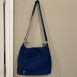 Baggallini Helsinki Large Shoulder Hobo Tote Travel Organizer Bag Blue Silver
