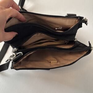 Baggallini Modern Everywhere Triple Zip Crossbody Slim Bag Black Nylon Travel