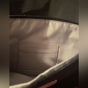 Exterior zip pocket with 3 card holder slip pockets on front.Exterior pocket with magnetic snap closure on back.gray Lined interior with interior zip pocket