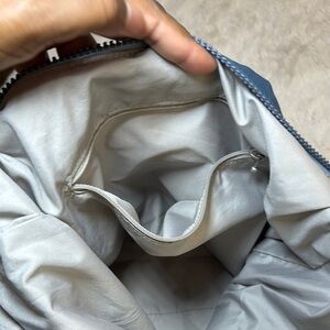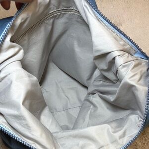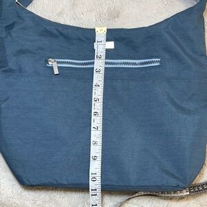 Elegant navy blue shoulder bag. Features a convenient front zip pocket. Ideal for daily use.