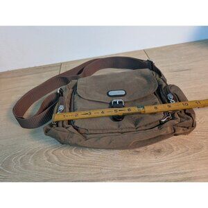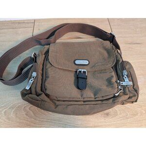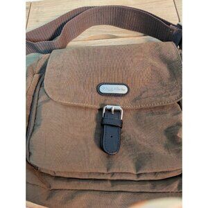 Baggallini Nylon Multi Pocket Magnetic Flap Belt Buckle Crossbody Handbag Brown