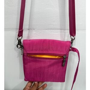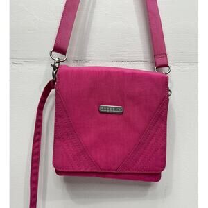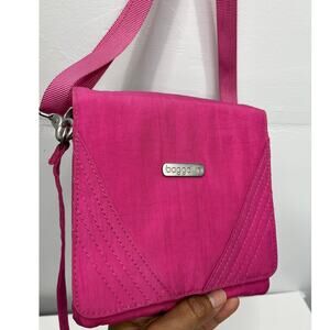 Baggallini Divide Crossbody Bag / Measurement-Length 6” inch, Height 6.5” inch, Width 2” inch / Color-Pink / Pre-Owned / 4 Card Slots, Key Holder, Many Pockets / Adjustable Strap