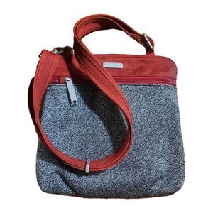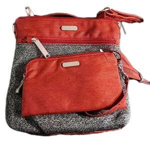 Baggallini RFID Crossbody Bag w Removable ID Card Cosmetic Bag Wristlet Red Blk. Excellent Preowned Condition. Nonsmoking Seller. Ready for immediate shipment.