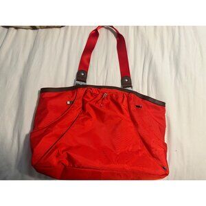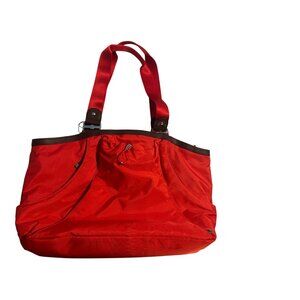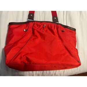 Baggallini Red/Orange Nylon Travel Tote Bag With Brown Accents & Multiple Compar