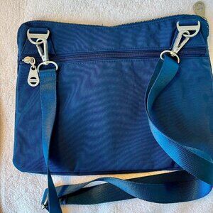 Baggallini Rio Crossbody Travel Bag, Blue Baggallini with adjustable straps and multiple compartments.