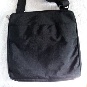 This is a slim profile crossbody organizer bag from baggallini in black. It is in excellent used condition -- carried less than 10 times. Clean, and all zippers and closures work perfectly.