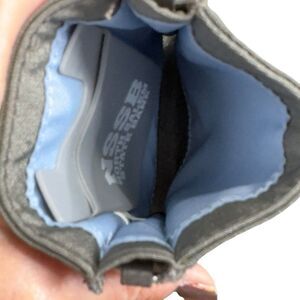 See photo of inside. There is a stick on card holder that has been put inside the handbag.