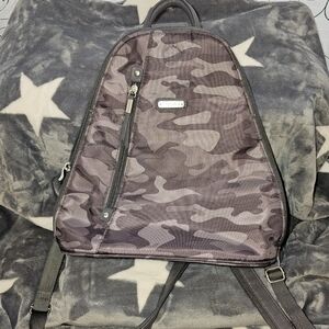 EUC MULTI COMPARTMENT BACKPACK STYLE PURSE. STRAPS ZIP TOGETHER FOR A CROSS BODY OPTION OR UNZIP THEM FOR A BACKPACK.
