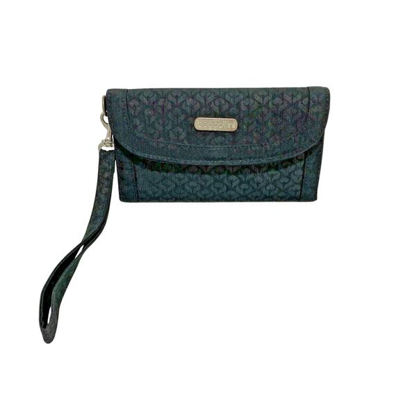Baggallini black canvas wristlet clutch purse trifold wallet coin pocket ID card