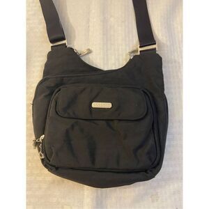 Baggallini black crossbody Wallet Built in Zippers Nylon Bag 10x9"